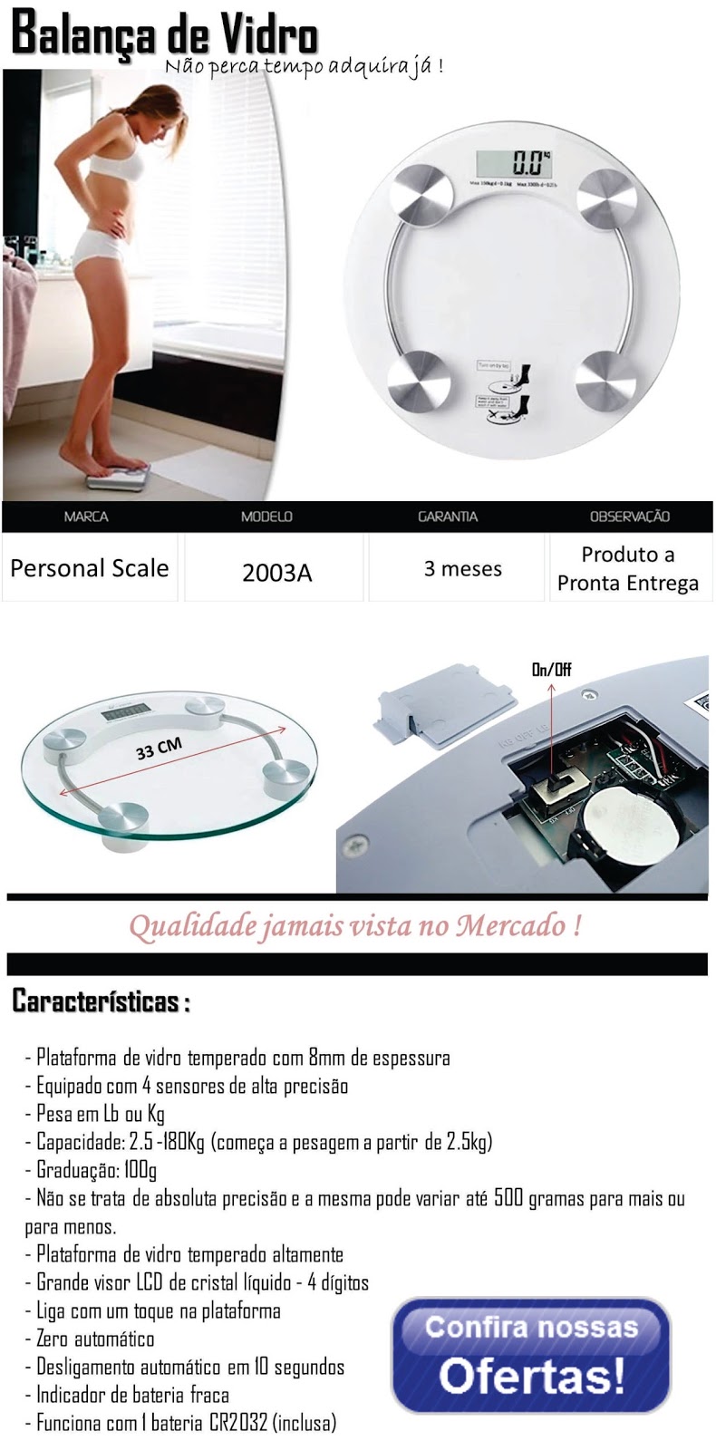 Balança Digital Redonda Vidro Temperado Até 180kg